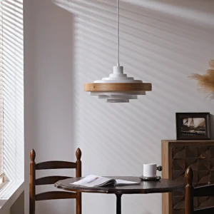 Nordic Modern Ceiling Pendant Light Fixture Single Cord Wood Drop Hanging Lamp in Kitchen Island Dining Table Bedside Restaurant