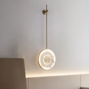 Round Coffee Brown Postmodern Creative Wall Lamp for Living Room Art Bedroom Bedside Luxury Marble Decor
