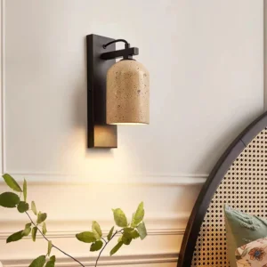 Nordic Japanese Minimalist Yellow Travertine Wall Lamp with Switch for Bedside Entryway Corridor Retro Background Wall Decor