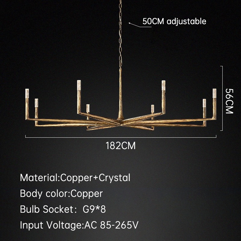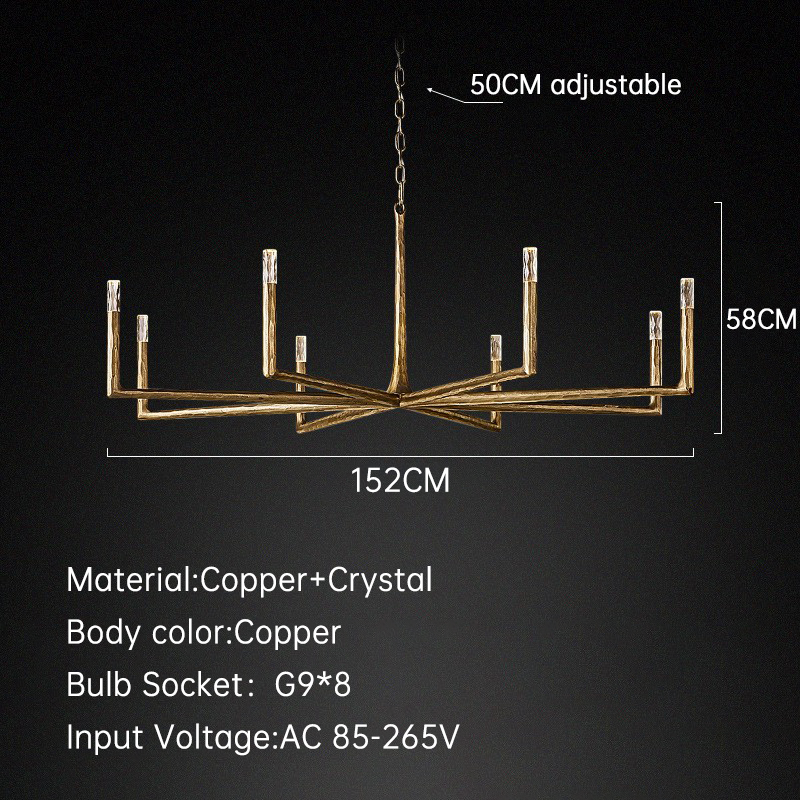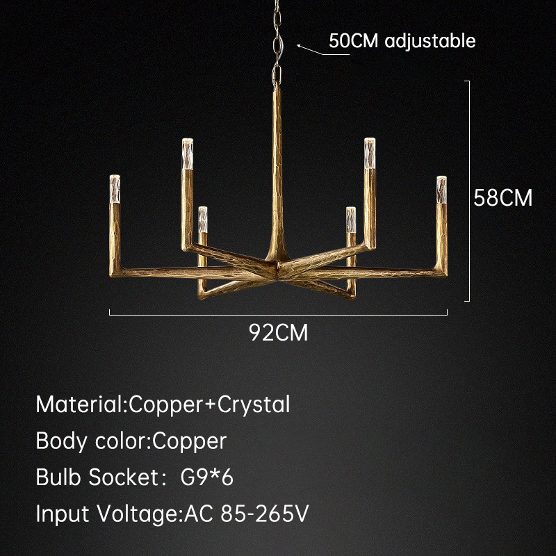 Full Copper Crystal Chandelier American Vintage Villa Living Room Dining Room High-End Art Decoration Lighting