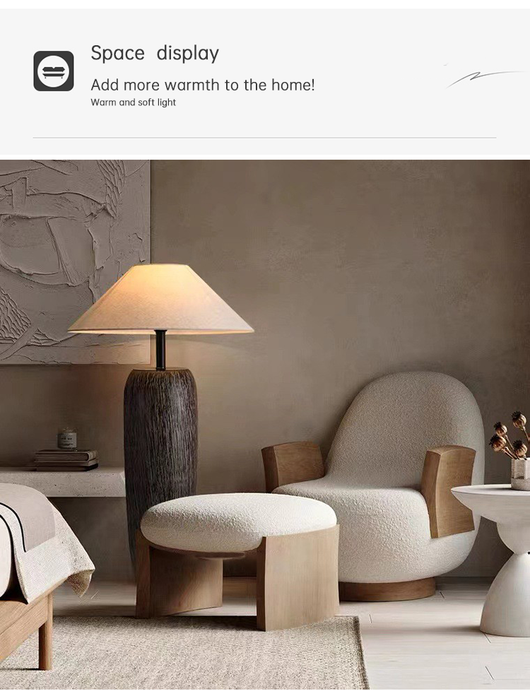 Japanese Style Retro Home Decor Pottery Fabric Shade Floor Lamp for Living Room Restaurant Hotel Bedroom Ceramic Stand Light