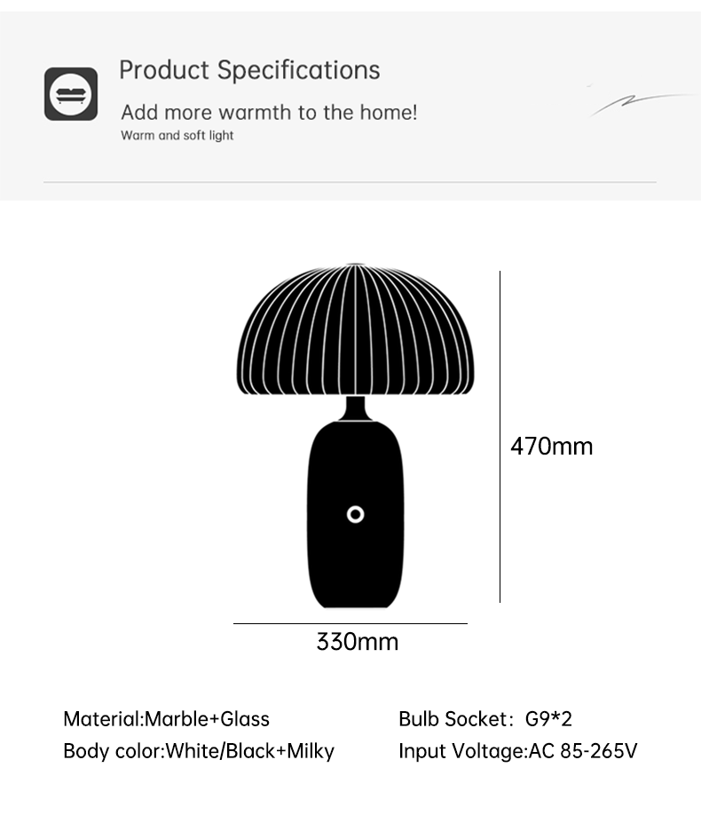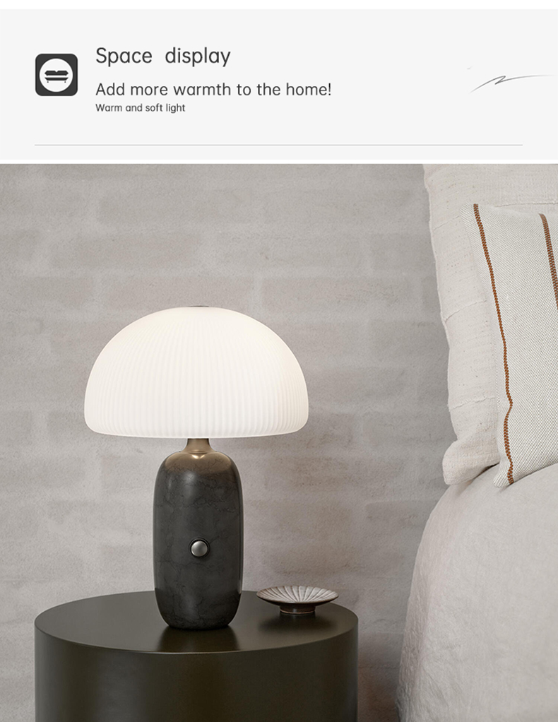 Modern Simple Creative Unique Marble Glass Mushroom Table Lamp High-End Decor for Bedroom Living Room Showroom