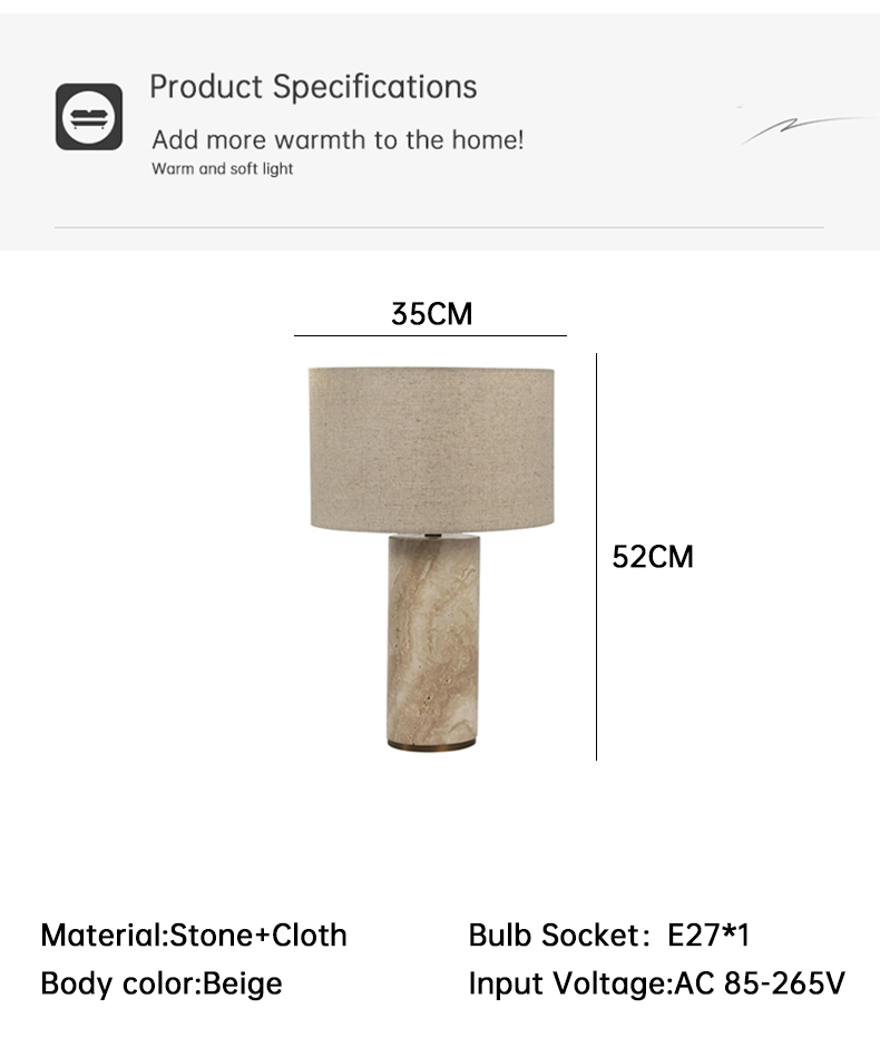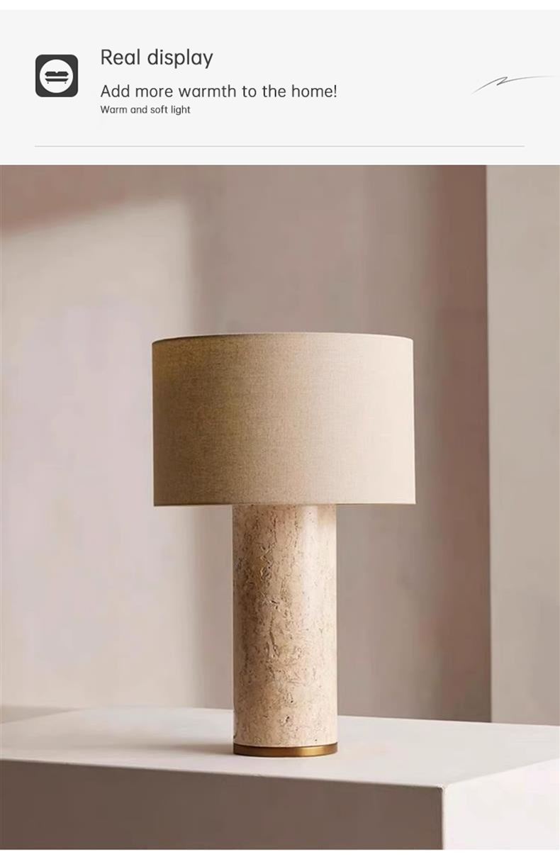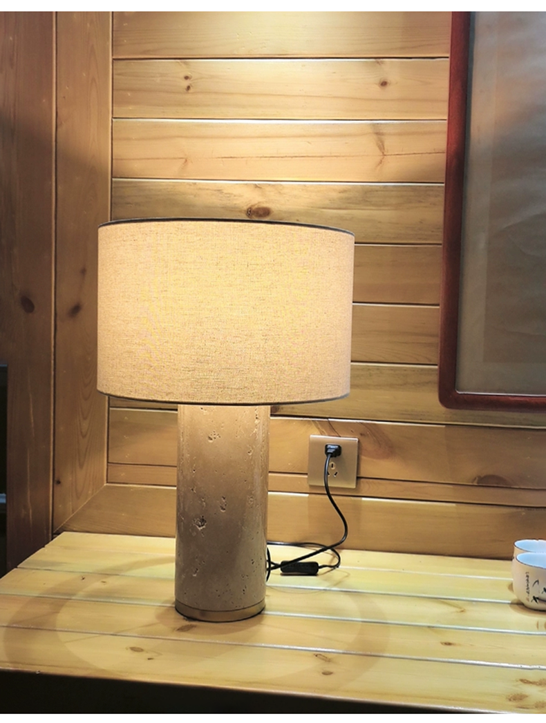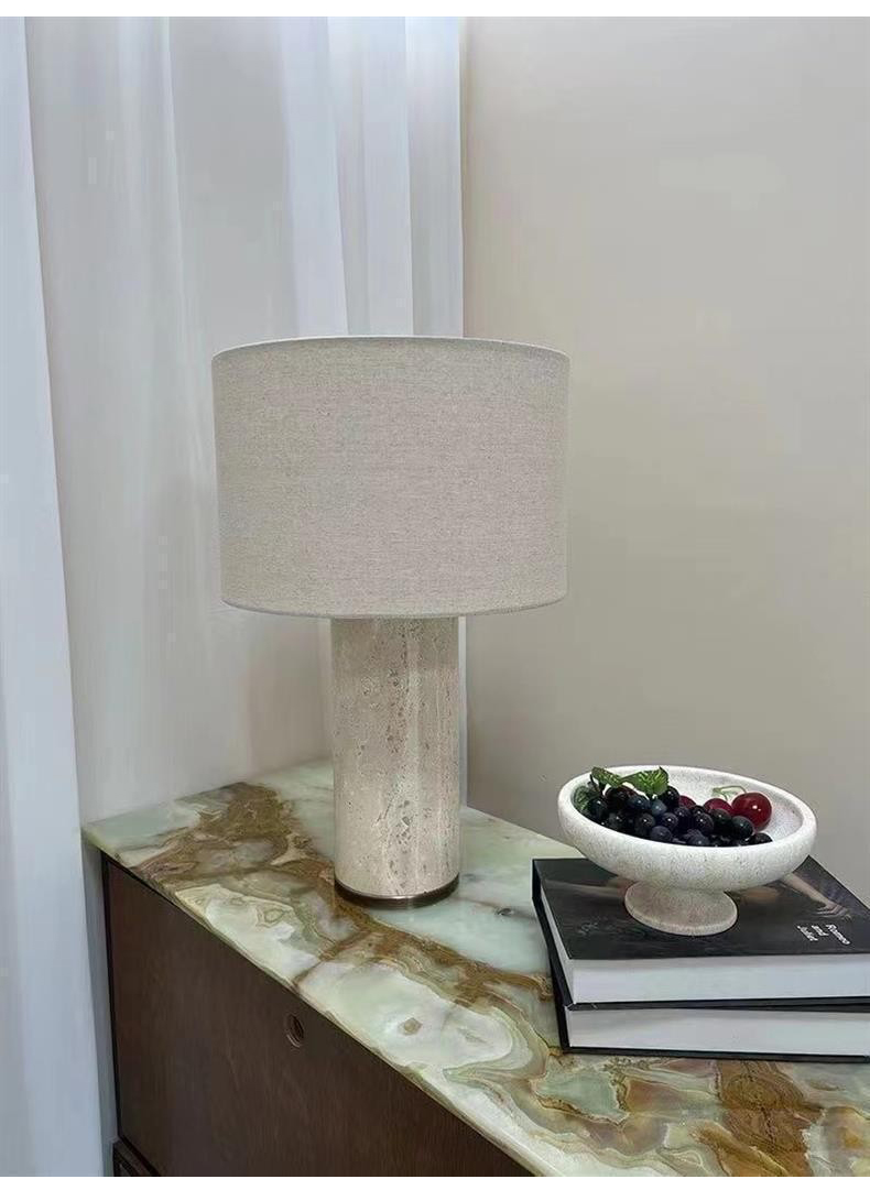 Luxury Natural Stone Fabric Shade Desk Lighting Natural Marble Stone Base Living Room Bedroom Bedside Dimmable Table Lamp