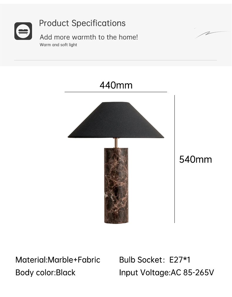 Designer Style Light Luxury Natural Marble Table Lamp for Villa Hotel Living Room Bedroom Bedside Decoration