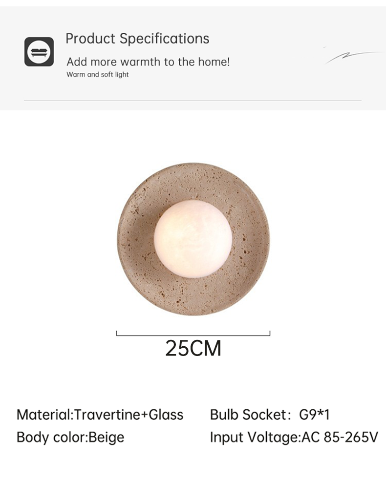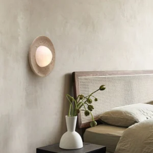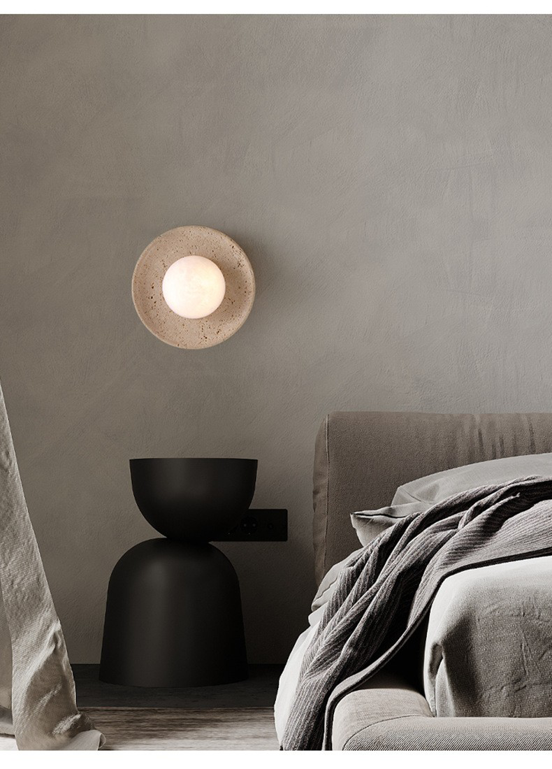 Wabi Sabi Style Ambient Wall Lamp Living Room Background Wall Mounted Bedroom Bedside Travertine Decorative Glass Light Fixture