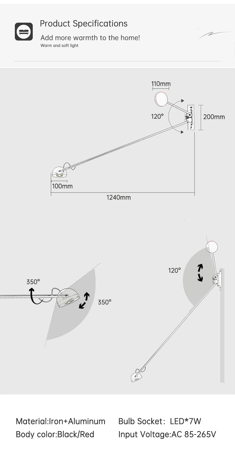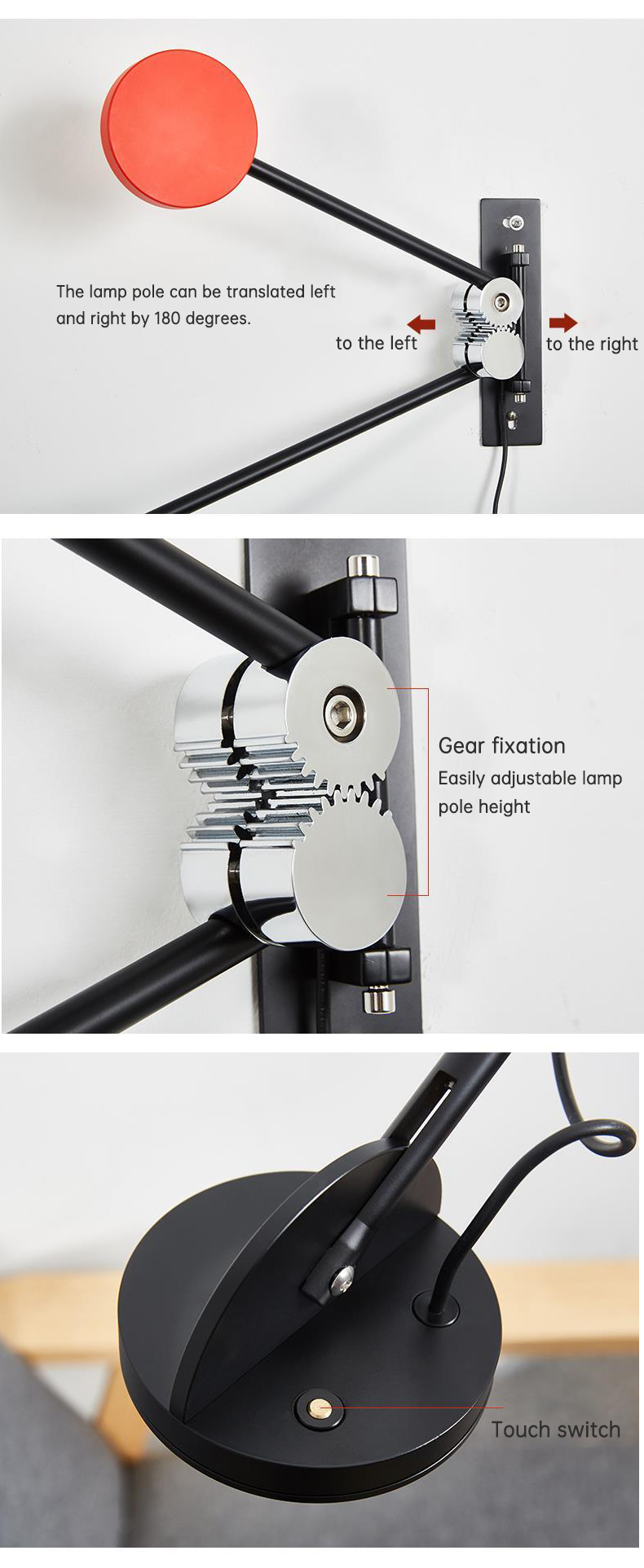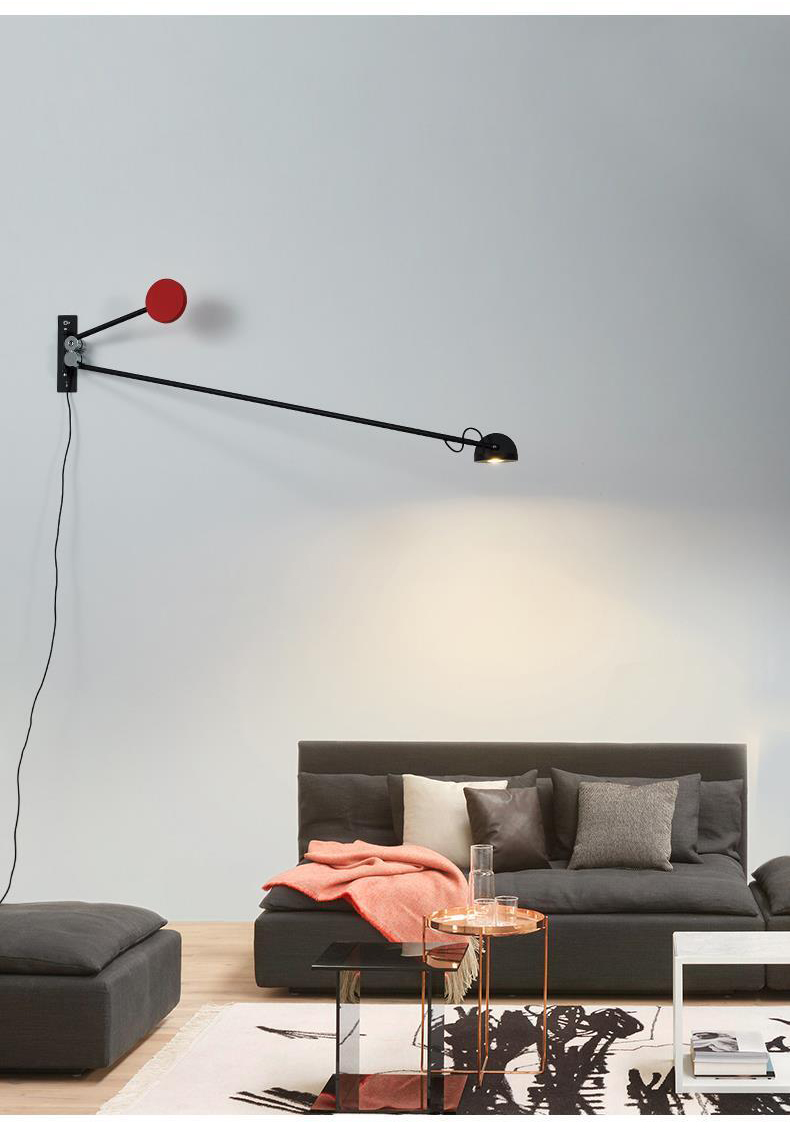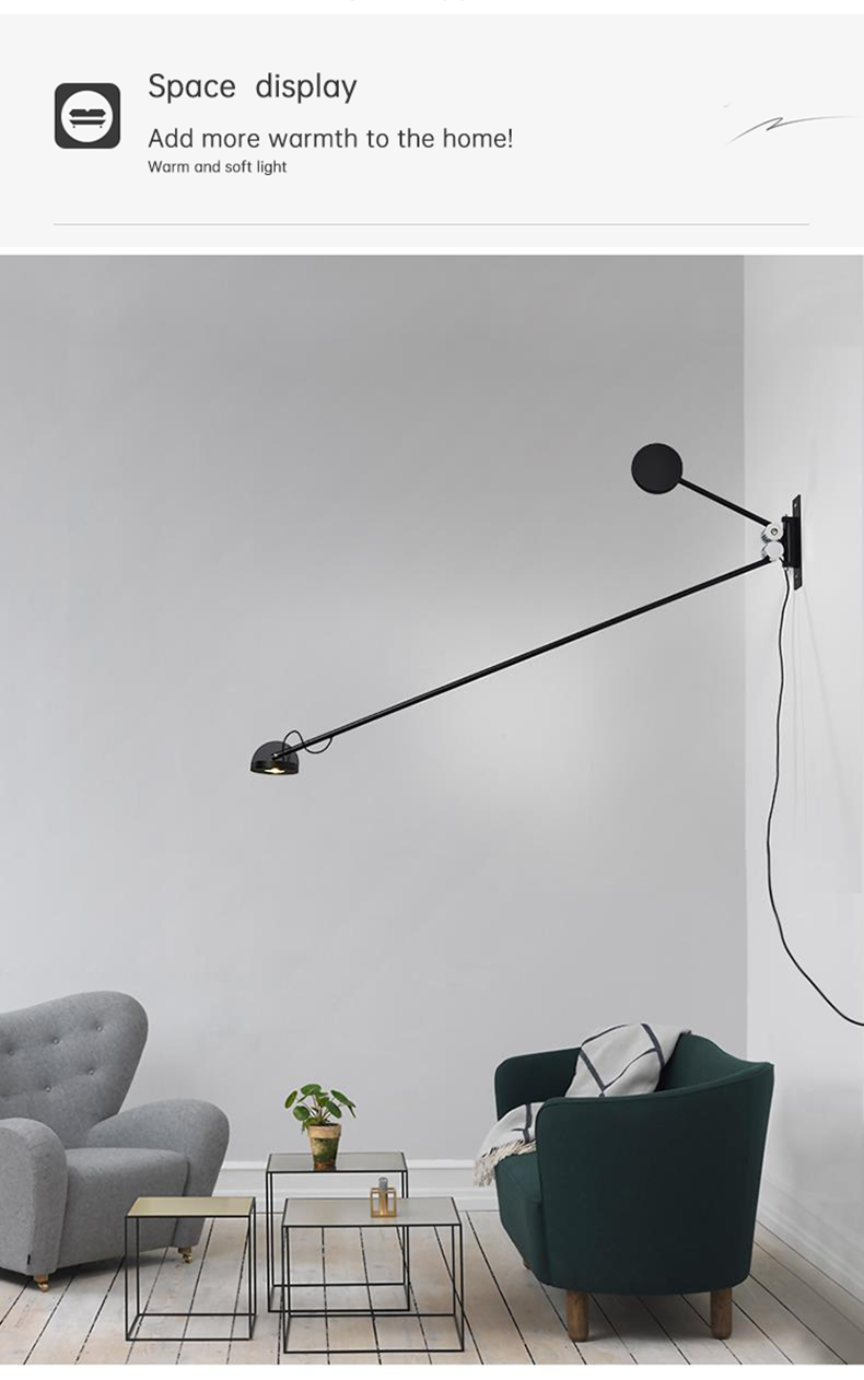 Minimalist Living Room Wall Lamp Nordic Bedroom Study Reading Decorative Rotating Rocker Long Pole Wall Lamp