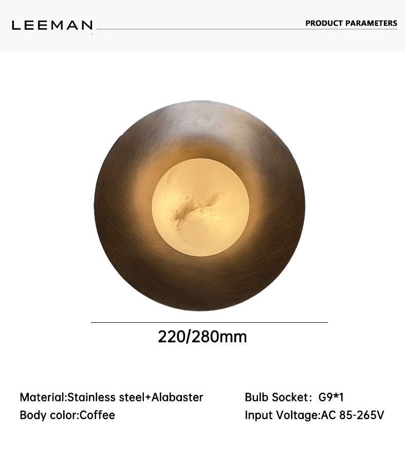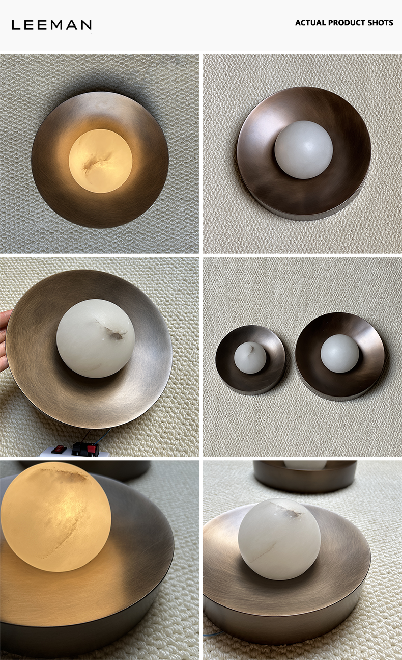 Round Coffee Brown Postmodern Creative Wall Lamp for Living Room Art Bedroom Bedside Luxury Marble Decor